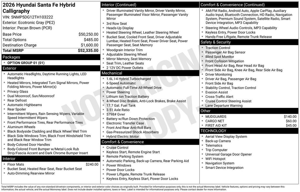 - Vehicle Name: Hyundai Santa Fe Hybrid