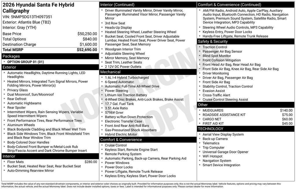 - Vehicle Name: Hyundai Santa Fe Hybrid