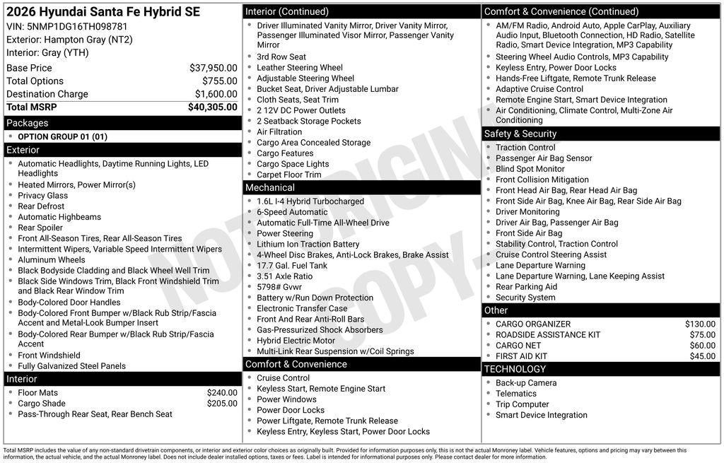 - Vehicle Name: Hyundai Santa Fe Hybrid