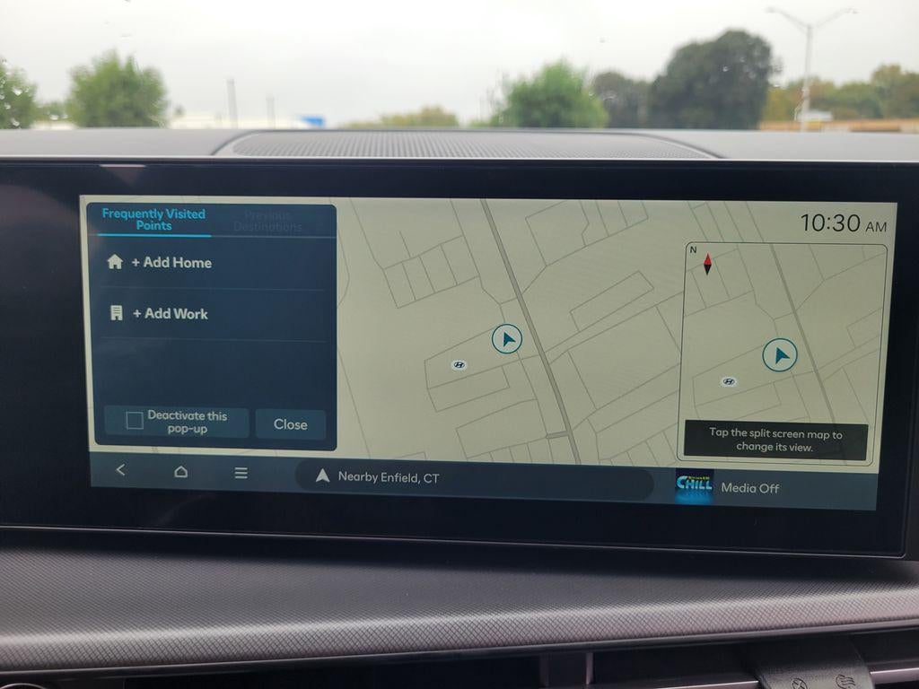 - Radio: AM/FM/HD Display Audio -inc: 6 speakers, 12.3" wide touchscreen display, Apple CarPlay, Android Auto, Bluetooth® hands-free w/wireless audio streaming, dynamic voice recognition, USB connectivity, SiriusXM, Blue Link+ connected car system, over-the-air updating capability, navigation system including traffic flow w/incident data via HD Radio (HERE) and rear seat quiet mode