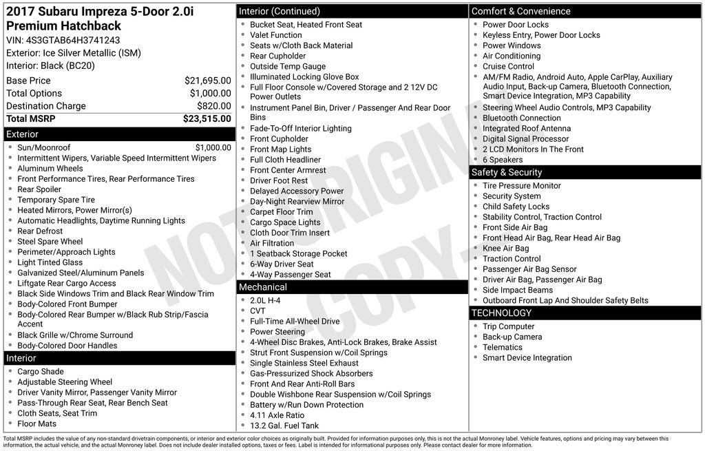 Whether you're commuting to work, embarking on a weekend adventure, or navigating the unpredictable New England weather, the 2017 Subaru Impreza 2.0i Premium is the perfect companion. With its impressive capabilities, thoughtful amenities, and timeless design, this Impreza is sure to exceed your expectations and provide you with a driving experience that is both exhilarating and rewarding.