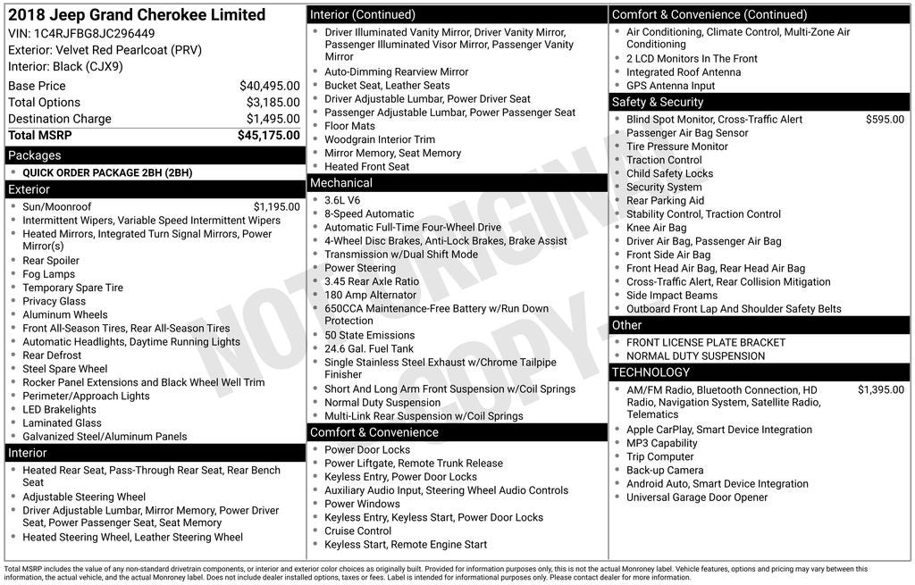 This 2018 Jeep Grand Cherokee Limited is a true standout in the SUV segment, blending impressive capabilities, premium amenities, and advanced technology. Experience the difference for yourself and schedule a test drive today. We're confident you'll be impressed by the uncompromising quality and value this exceptional vehicle has to offer.