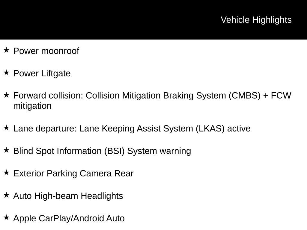 • Forward collision: Collision Mitigation Braking System (CMBS) + FCW mitigation