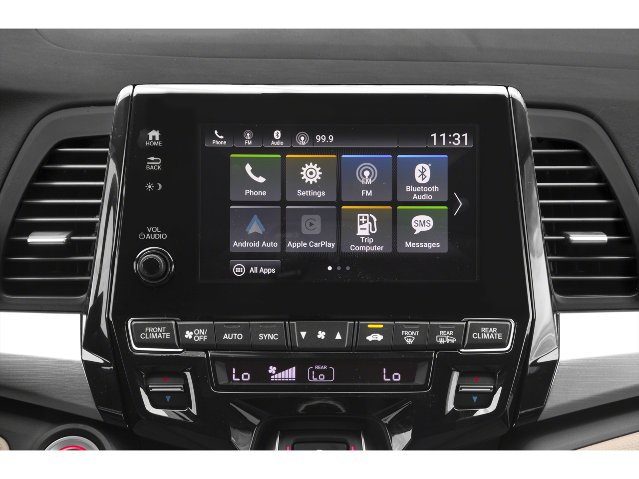 - Radio: 160-Watt AM/FM/HD/SiriusXM Audio System -inc: 6 speakers, subwoofer, multi-zone audio, Bluetooth® HandsFreeLink, Bluetooth® streaming audio, MP3/auxiliary input jack, radio data system (RDS), SMS text message function, 2.5-amp USB audio interface port in front, 2.5-amp USB charging port in center console, 2 2.5-amp USB charging ports in second row, CabinControl remote compatibility, 8" display audio w/high-resolution (720P) electrostatic touch-screen and customizable feature settings, Apple CarPlay/Android Auto, illuminated steering wheel-mounted audio controls and black fin-type roof-mounted antenna