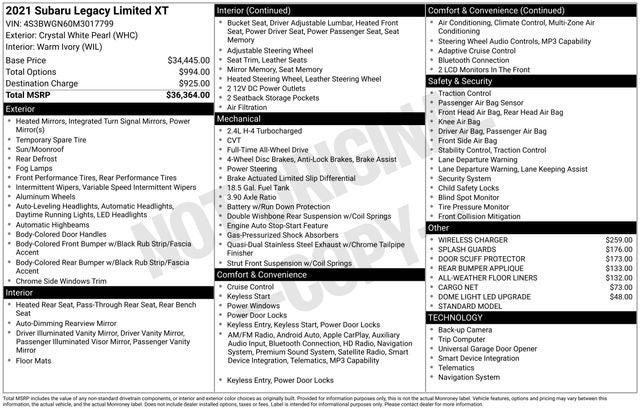 Elevate your driving experience with the 2021 Subaru Legacy Limited XT. This exceptional midsize sedan combines power, efficiency, and cutting-edge technology to deliver a truly exceptional driving experience. Visit our showroom today to take this remarkable vehicle for a test drive and discover why the Legacy Limited XT is the perfect choice for the discerning driver.