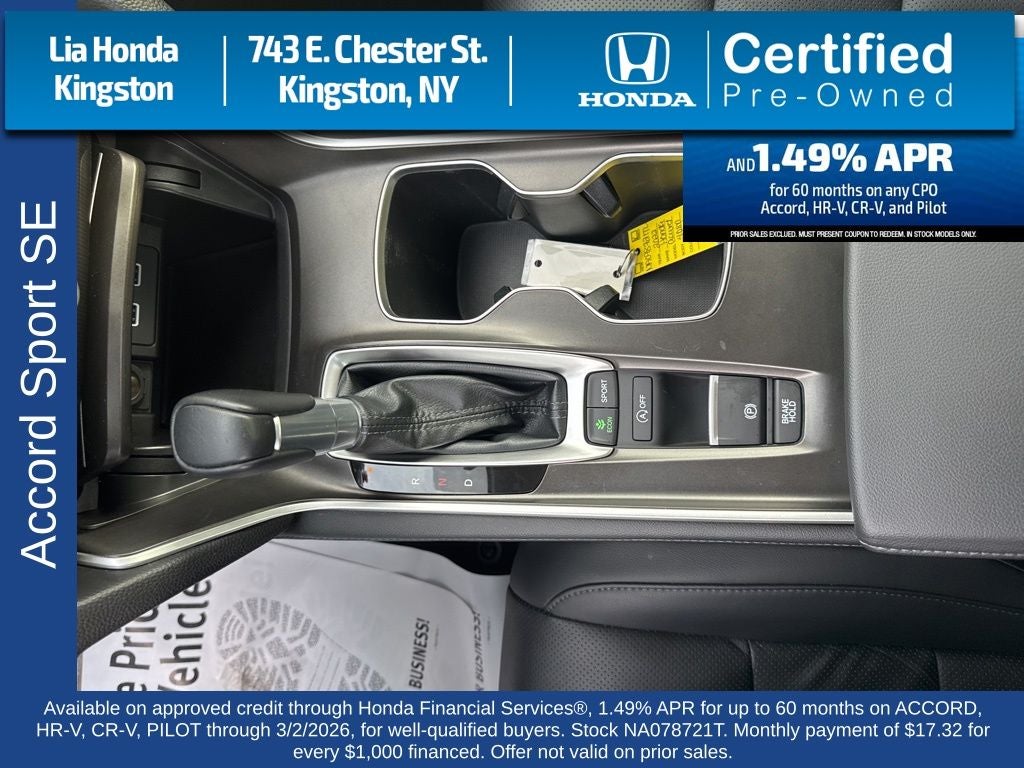 Honda True Used, One Owner Clean CarFax, Safe and reliable, Black w/Fabric w/Synthetic Leather Seat Trim, 8 Speakers, Adaptive Cruise Control: Adaptive Cruise Control (ACC) with Low-Speed Follow, Apple CarPlay/Android Auto, Dual front impact airbags, Dual front side impact airbags, Forward collision: Collision Mitigation Braking System (CMBS) + FCW mitigation, Fully automatic headlights, Heated front seats, Knee airbag, Lane Departure Warning System, Overhead airbag, Power driver seat, Power passenger seat, Radio: 180-Watt AM/FM Audio System, Remote keyless entry, Wheels: 19 Machine-Finished Alloy w/Black Inserts.