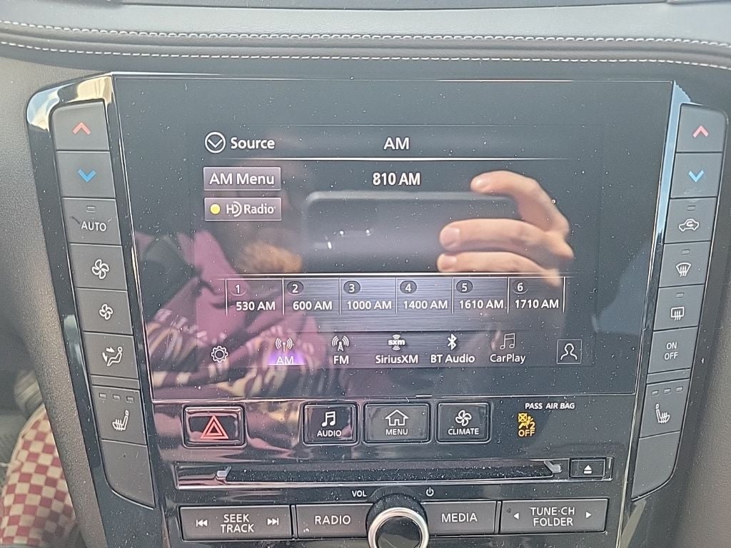 - Radio: AM/FM Audio System -inc: 6 speakers, INFINITI InTouch dual display system w/upper 8" and lower 7" HD touch screens, wireless Apple CarPlay, Android Auto, HD Radio technology, SiriusXM radio w/advanced audio features and 90-day complimentary trial, INFINITI voice recognition, INFINITI InTouch services, Siri eyes free and Wi-Fi hotspot